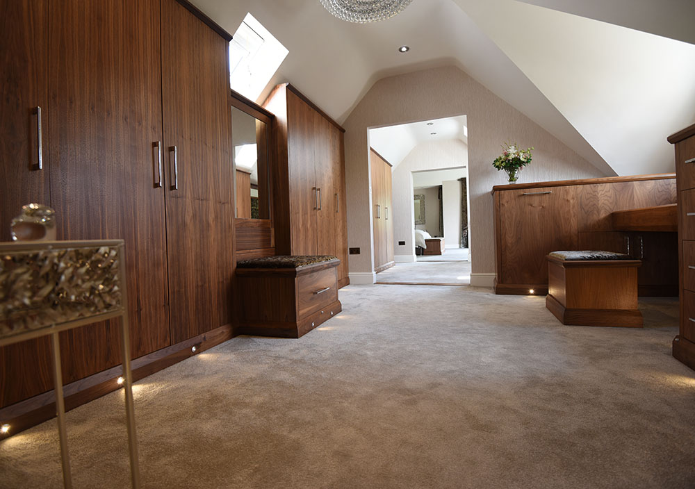 BESPOKE FITTED WALNUT BEDROOM AND DRESSING ROOM LEAMINGTON SPA, WARWICKSHIRE