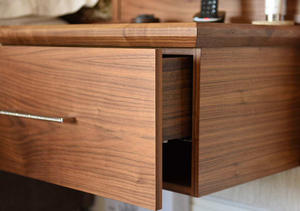 Cantilevered bedside cabinets