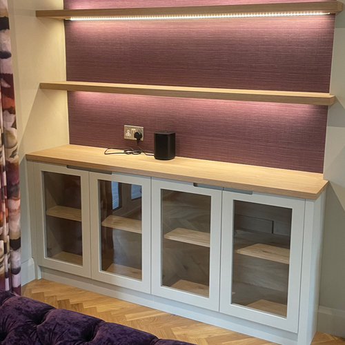 Fitted furniture creates a cohesive and streamlined appearance in your home because it’s integrated into the structure of your home. Unlike bulky freestanding units that can clutter a room and take up useable floorspace. The beauty of bespoke fitted storage furniture is that it can echo the period style of your property or conceal everything behind a wall of barely-there cupboards, as you can see in our project above.