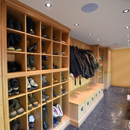 Built-in storage can be multipurpose too, such as this storage bench we designed and handcrafted for a family’s boot room.